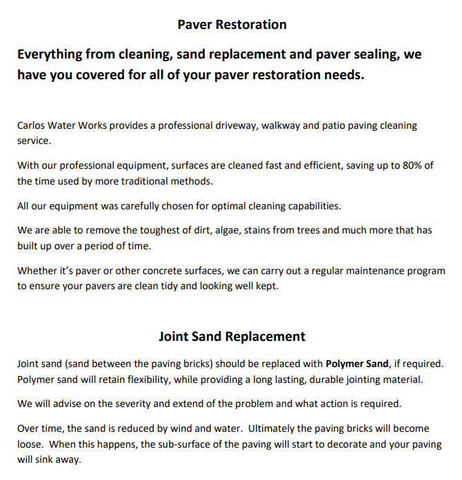 Carlos Water Works PAVER RESTORATION